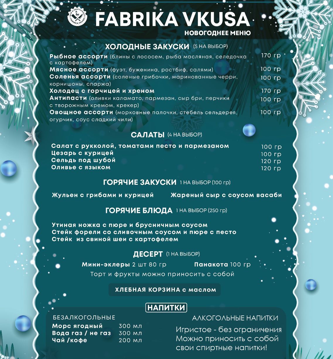 - банкетное праздничное меню;
