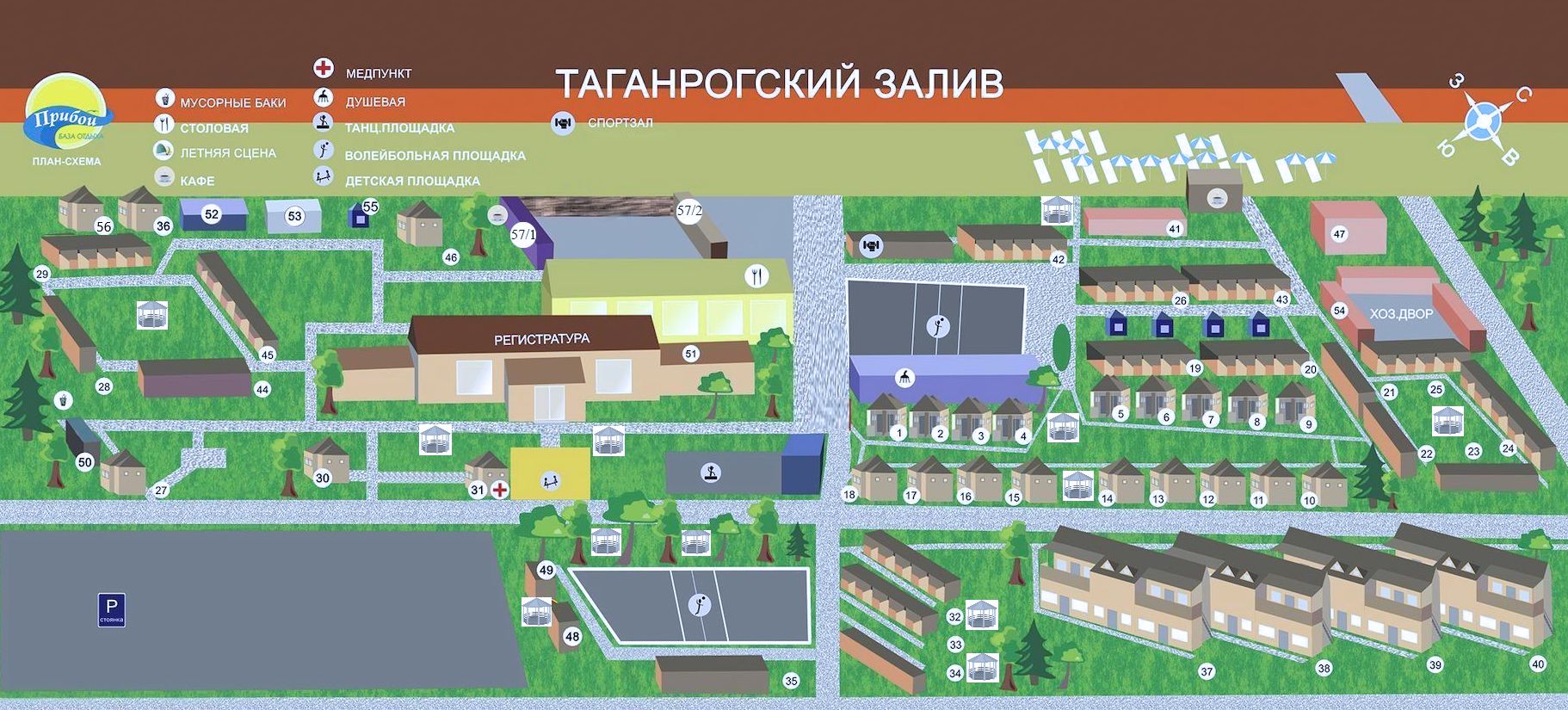 «Прибой» - база отдыха в городе Ейске Краснодарского края предприятие курортной сферы, предоставляющее комфортный отдых и оздоровление, расположенное на Ейской косе, где природа создала идеальные условия сочетания морского ионизированного воздуха и теплой морской воды Азовского моря.