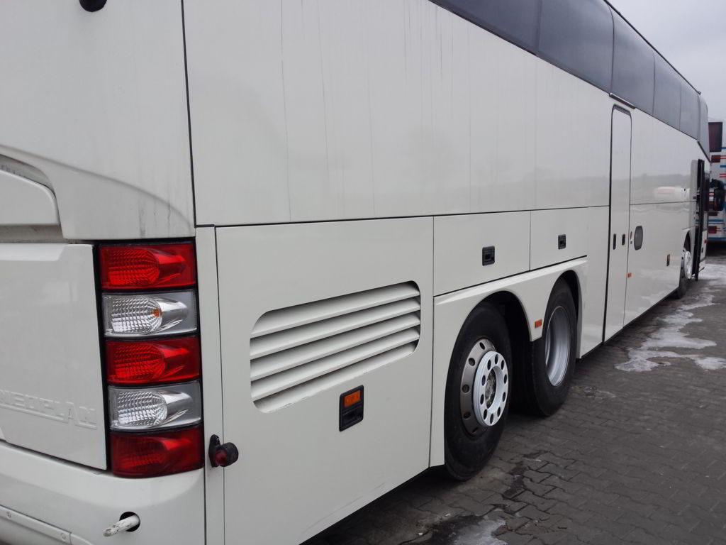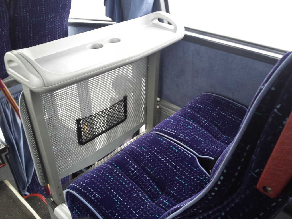 Оснащение: retarder, ABS, ESP, ASR, камера паркования, холодильник, кондиционер и климатическая установка, туалет, минибар, полки для перевозки ручной клади пассажиров, сидения откладываются и раздвигаются в бок, имеются ремни безопасности для каждого посадочного места, отдельная кабина водителей.
